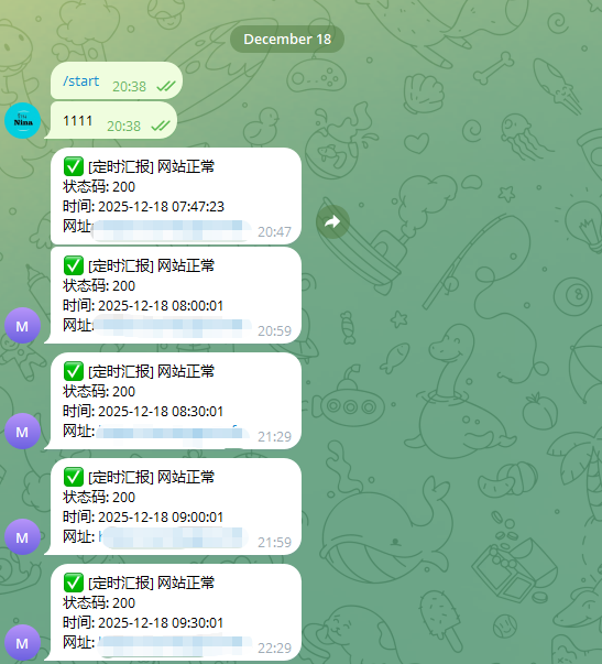 Now, even while you sleep, your bot will send you a “✅ Website is UP” message every hour, giving you complete peace of mind!