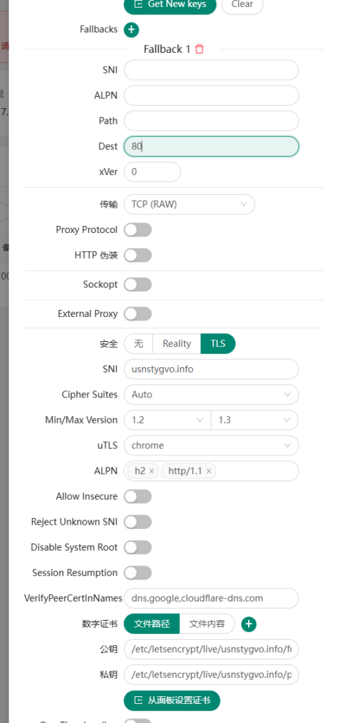解决方案:回到 x-ui 面板,再次编辑那个 443 端口的配置: